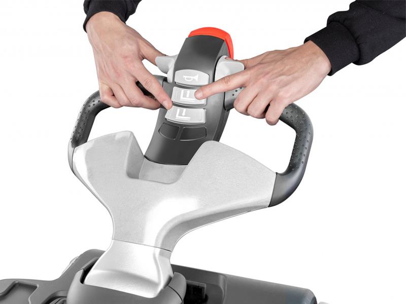 Hız, ergonomi, kompakt tasarım – menteşeli platformlu EXH-SF transpalet, tüm bu niteliklerin mükemmel birleşimidir. 2.500 kg'lık maksimum kaldırma kapasitesi ve 14 km/s'lik etkileyici azami hızıyla EXH-SF, üstün elleçleme gücü sergiler. Entegre kompresörlü hava yastıklı ayakta durma platformu, çalışmayı her zaman sırt dostu tutar. Yaylı destek tekerlekleri sayesinde akıllı depo düzenleyici, rampaları konforlu, güvenli ve optimum çekiş ile geçer.