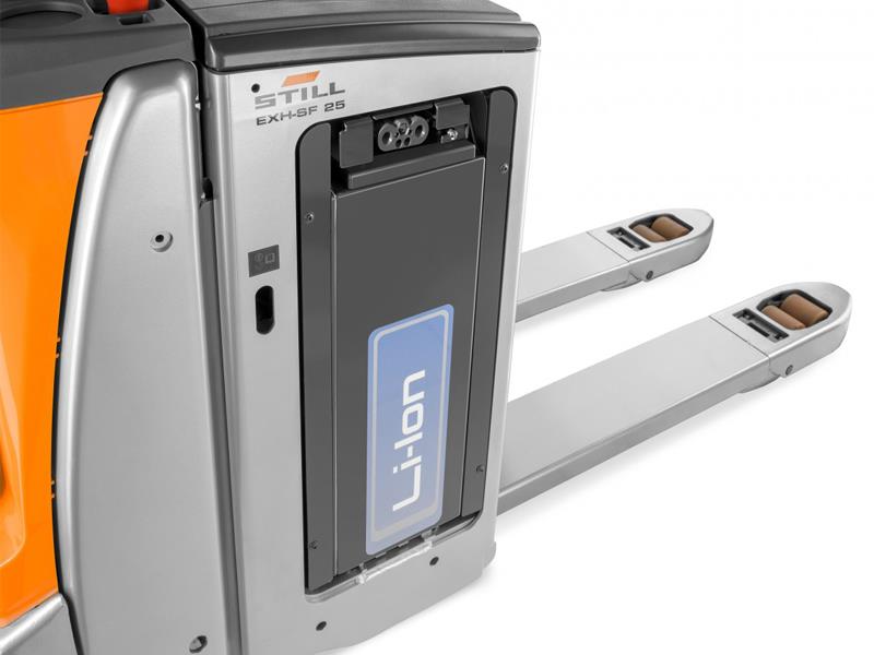 Ayrıca, EXH-SF değerli depo alanından tasarruf edilmesine yardımcı olur: Toplam genişliği sadece 720 mm olan transpalet bir Europallet'ten daha dardır ve en dar koridorlarda hassas bir şekilde manevra yapılabilir. Günün 24 saati çalışan bir araca mı ihtiyacınız var? STILL Li-ion teknolojisi ile en kısa molalar bile EXH-SF'yi şarj etmek için yeterlidir. Bireysel ihtiyaçlarınıza bağlı olarak farklı akü boyutları mevcut olduğundan, her türlü müşteri gereksinimi ve çoklu vardiya işlemleri gerçekleştirilebilir.