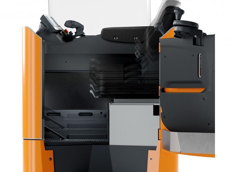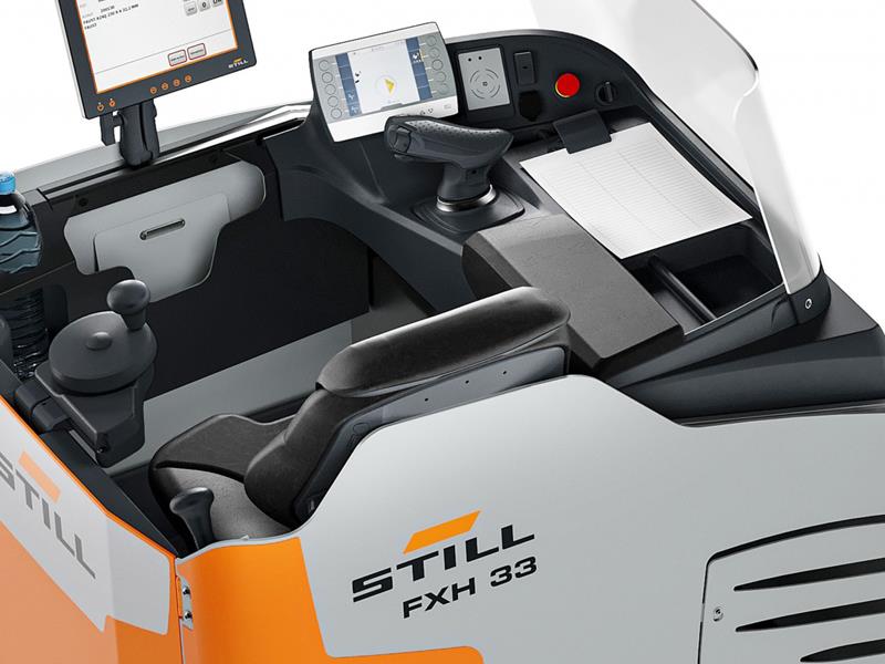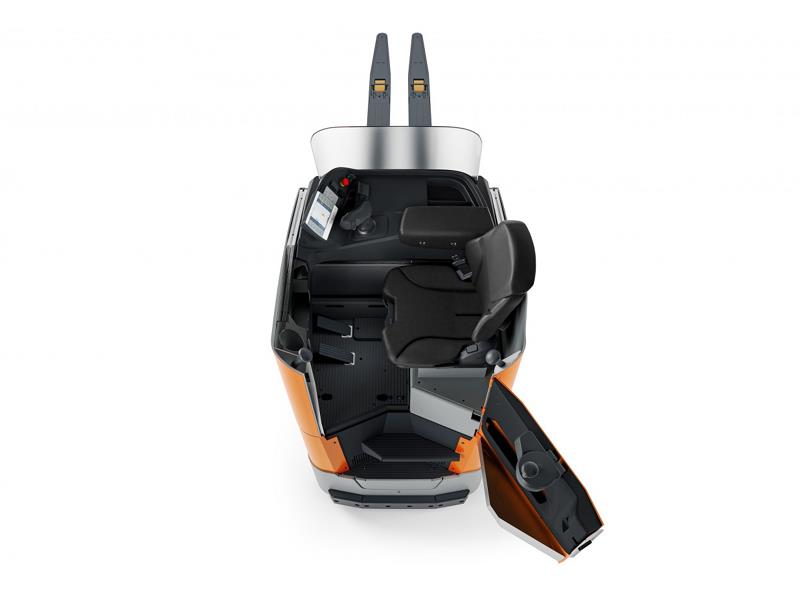 Yepyeni renkli ekran, akü durumu, sürüş hızı, kat edilen kilometre, tarih ve saat hakkında bilgi sağlar. Ekran parlaklığı ortama göre otomatik olarak ayarlanır. Joystick ve elektrikli direksiyon hassas manevraya yardımcı olurken, yüksek koltuk pozisyonu mal taşımacılığının net bir şekilde görülmesini sağlar. Yastıklı sürücü koltuğu ve yüksekliği ayarlanabilir ayak plakası, operatörün boyundan bağımsız olarak ergonomik olarak optimize edilmiş bir sürüş deneyimini garanti eder. Viraj Hız Kontrolü, manevra ve STILL Güvenlik Işığı dahil olmak üzere çeşitli sistemler de iş yerinde maksimum güvenlik sağlar.